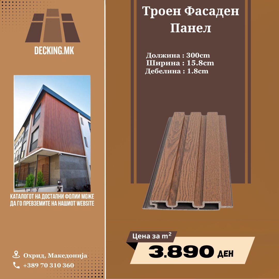 WPC (Wood-Plastic Composite) фасадните панели претставуваат современо и одржливо решение за обложување на надворешни ѕидови. Со 10-годишна гаранција, овие панели се дизајнирани да траат многу подолго од гаранцискиот рок, без промена на бојата, обликот или функционалноста.